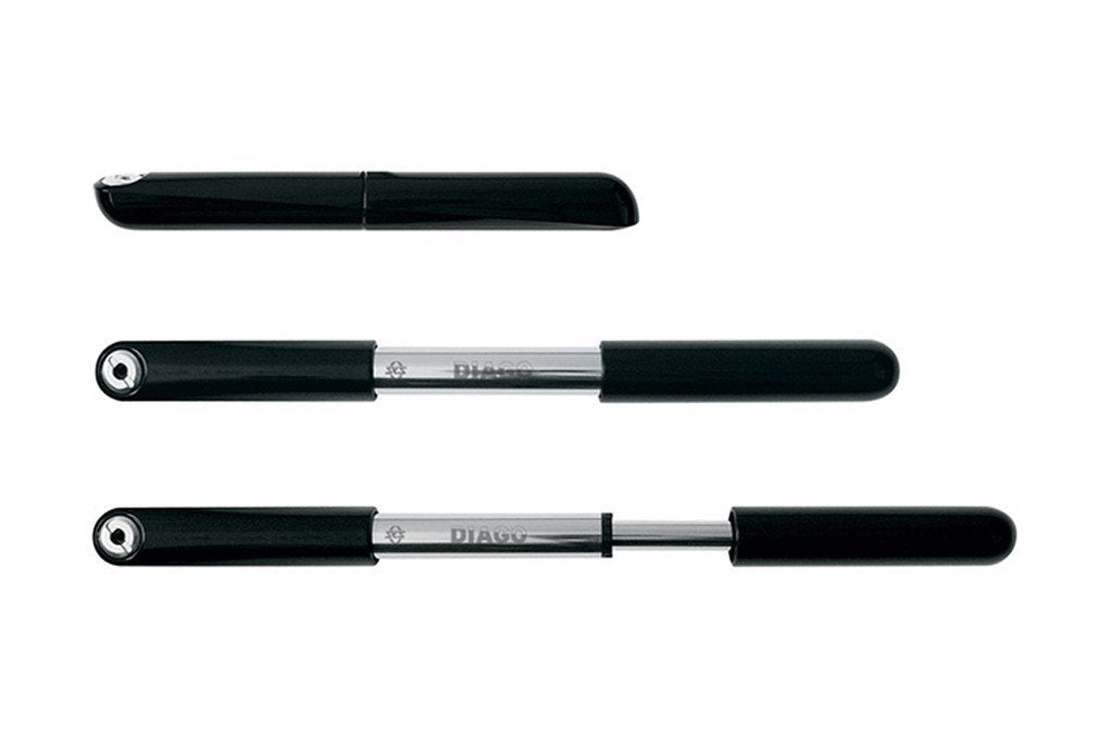 Upon using the SKS Diago Mini Pump for the first time, your hands may get sweaty and your knees may get weak. Don't worry, this sleek, high-pressure pump has that effect on most cyclists. As aero as they come, this ultralight mini pump matches your already classy setup. A telescoping internal structure enables quick, high-pressure strokes to get you back on the road without a hassle.